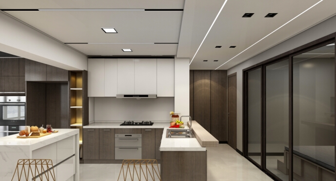 不同于客廳、臥室等家庭休閑活動區域,廚房作為做飯的家務生活空間,其吊頂存在的意義不在于美感,而在于實用。