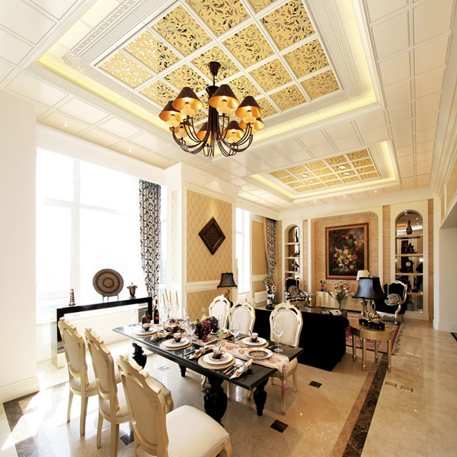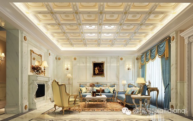 美式古典風(fēng)格在空間上追求連續(xù)性,追求形體的變化和層次感。這個房間以美式古典宮廷風(fēng)格為主,以復(fù)古的白色和金色為基調(diào)。室內(nèi)外高貴典雅,光影變化豐富。為體現(xiàn)宮廷風(fēng)格,家具、門,窗都漆成白色,藍(lán)色的布藝沙發(fā),金色的畫框壁畫,金色系的地毯,帶有一種異域的視覺沖擊。用壁爐的造型打造的電視柜使得一家人看電視時的感覺更為溫馨。
