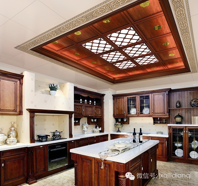 廚房是一個非常重要的地方,有一個干凈、整潔、舒適的環(huán)境,東西擺放有序,灶臺干干凈凈。以創(chuàng)造一個好環(huán)境,營造一份好心情,做出一桌色香味俱全的好美味那是不在話下了。長方形廚房戶型,白色的菱形吊頂,配上方塊顏色各異的墻磚,白色的櫥柜更加增添了美式家居的感覺。這樣的廚房,能讓廚師的心情愉悅,讓飯菜更加美味。